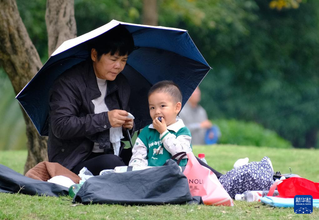 2月23日,人们在广西南宁市南湖边绿地上休闲娱乐。
