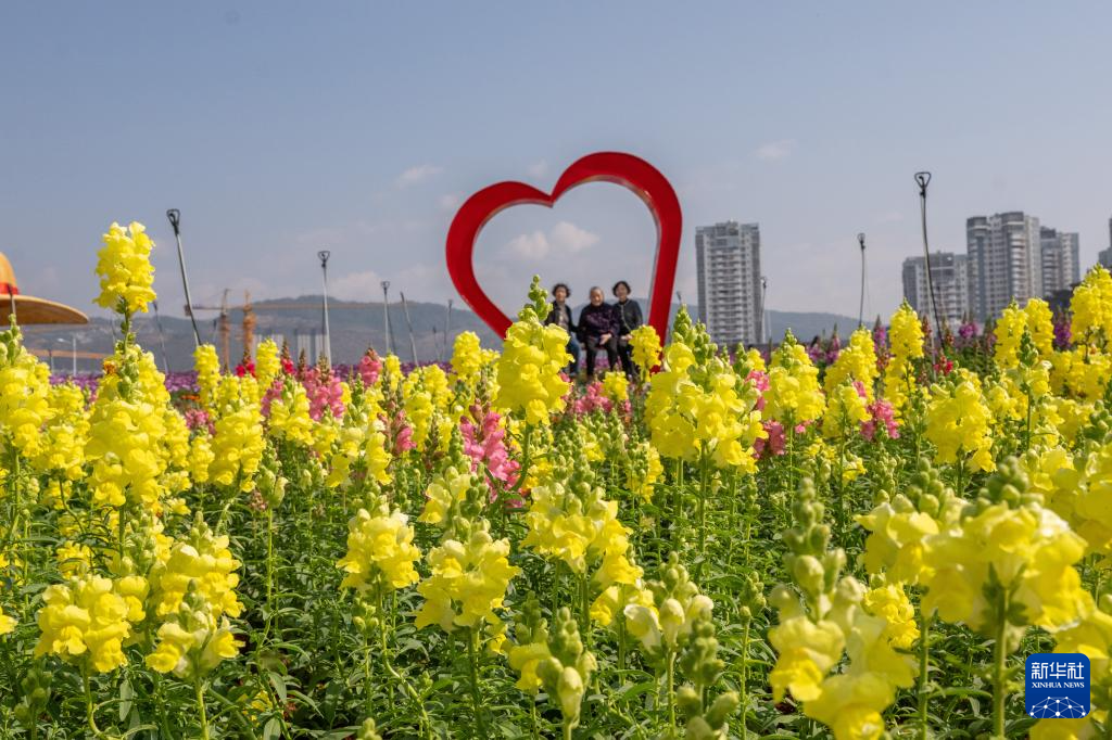 2月23日,游客在云南省文山壮族苗族自治州文山市一花园内赏花。