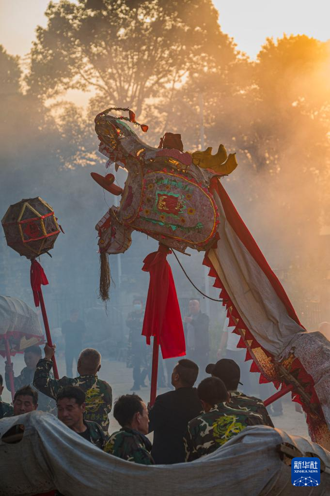 2月22日,村民在湖南省娄底市双峰县杏子铺镇涟水村舞火龙。