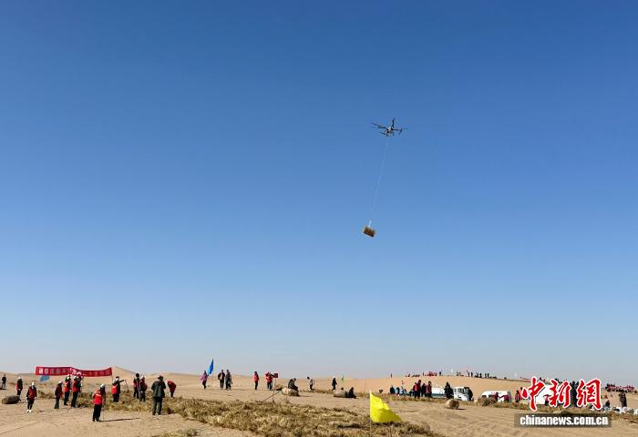 中新网兰州3月22日电 (记者丁思)三月春风暖,固沙正当时。在中国北方主要沙尘源地河西走廊的风沙线上,甘肃治沙人如期奔赴沙海。今年的春季压沙植树现场,无人机、履带式沙障机轮番上阵,各地志愿者分批走进沙漠种树,呈现出人机协作、全民参与的治沙植绿新场景。