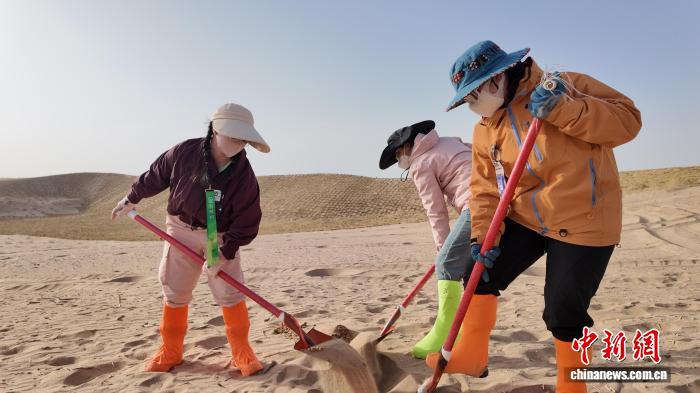 2026年春季以来,来自五湖四海的志愿者抵达甘肃民勤,参与“请到民勤种棵树”公益活动。富承璘 摄