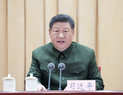 4月9日,在青岛市康养领域具身机器人暨智能康复类产品训练验证中心,工作人员在演示下肢康复机器人功能。